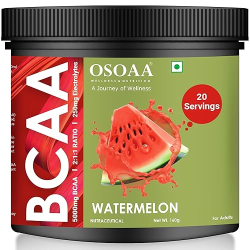 OSOAA BCAA Powder | Intra Workout Supplement | Muscle Recovery Drink with 5000mg BCAA | Amino Acid Supplements (20 Servings) | Watermelon
