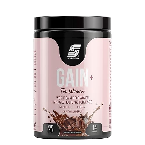 Sparkfusion Gain+ Women Weight Gainer | With Full Power 12 Herbs,Protein & Vitamins | For Improves Figure And Curve Size | Weight + Mass Gainer For Women Chocolate Smoothie flavour 500 gm