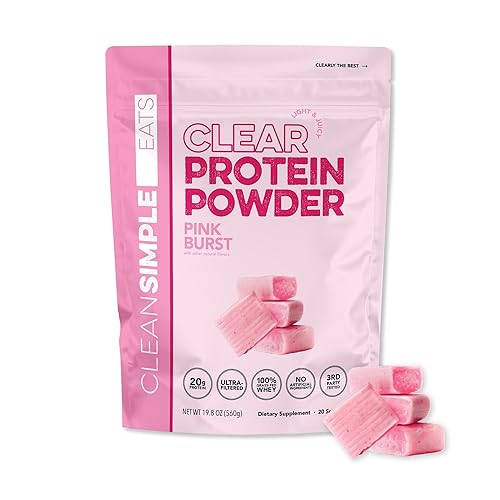 Clean Simple Eats Clear Protein Drinks, 20G Grass Fed Whey Protein Isolate, Ultra Filtered, Light & Refreshing Beverage, Low Lactose, No Artificial Ingredients, Pink Burst Flavor, 20 Servings