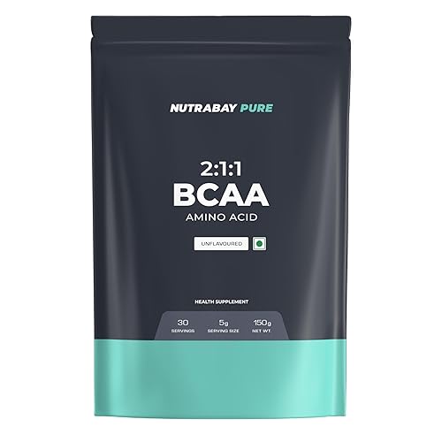 Nutrabay Pure BCAA 2:1:1-5000 mg Vegan BCAAs, Intra/Post Workout Amino Acid Supplement for Muscle Recovery & Endurance - 150g, Unflavoured